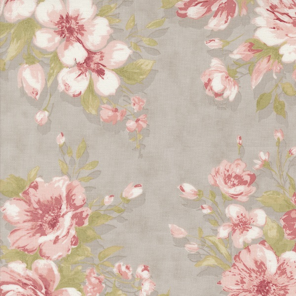 44390 15 Stone, Muse by 3 Sisters is a design of large pink flowers on a stone grey background.