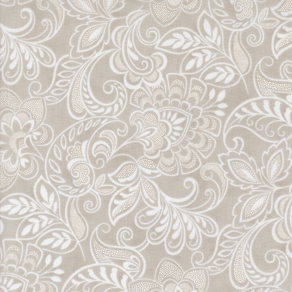 44391 15 Stone, Muse by 3 Sisters is a floral damask style design in cream and stone grey.