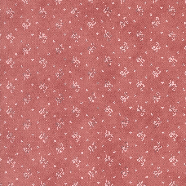 44397 13 Scarlet, Muse by 3 Sisters is a design of little pink swirls on a scarlet red background.