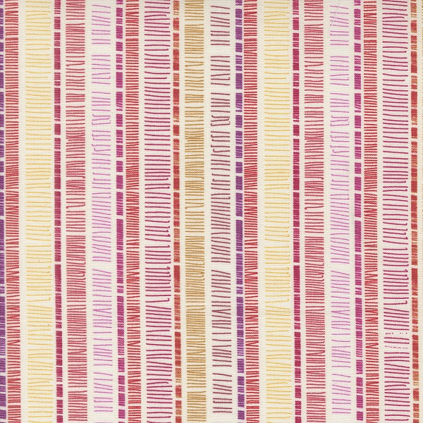 48785 11 Cream, Superbloom by Robin Pickens is a design of stripes made from lines in red, yellow and pinks on a cream background.