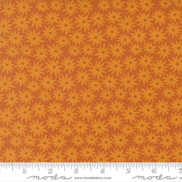 The design features a vibrant floral pattern in rich shades of orange and rust, creating a bold yet natural look. This adds warmth and texture perfect for quilts, autumn projects, and cozy home décor.
