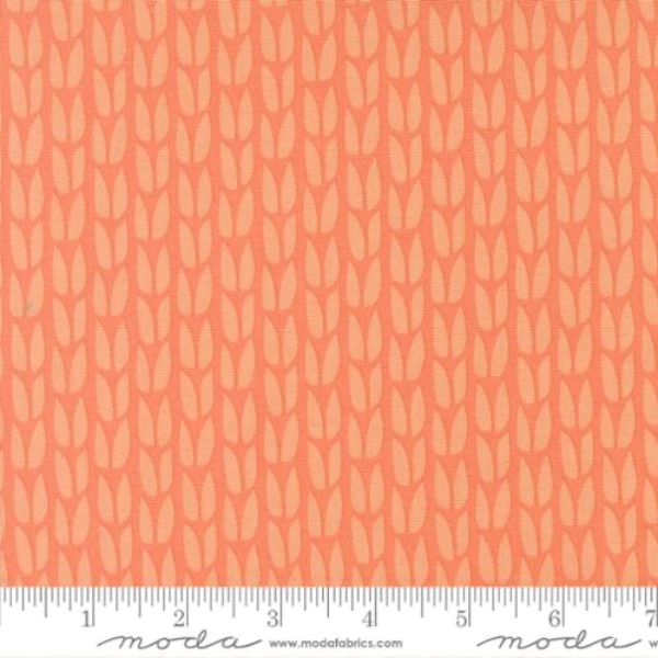 The design features a subtle, tone on tone print of gently swirling foliage in coral. This elegant blender fabric adds a light and airy touch ideal for backgrounds, sashing, or pairing with bold prints to bring balance and softness to your quilting project.