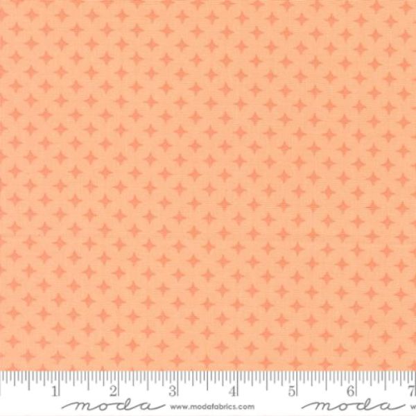 The design features a sleek peach ground scattered with geometric diamond motifs in soft peach, creating a modern, nature inspired blender effect. This offers subtle texture and elegant tone-on-tone interest ideal for quilt backgrounds, sashing, or harmonising with bolder prints.