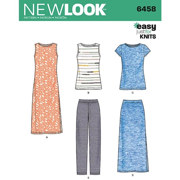 6458 Dresses New Look Pattern. Easy Dressmaking Pattern for knitted fabrics such as Jersey.