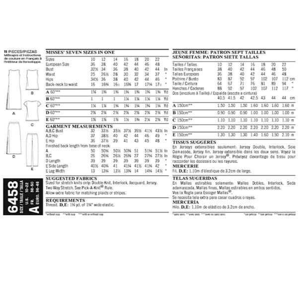 Sized for stretch knits only: Double Knit, Interlock, Jacquard, Jersey. Two Way Stretch.