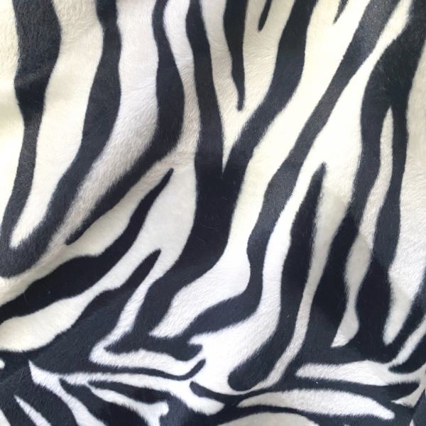 Zebra Print Faux Fur. This fabric is ideal for comfy furnishings, plush toys, soft cushions and clothing accents such as collars and cuffs.