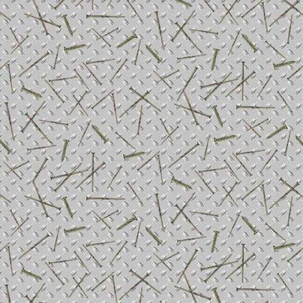9650-90 Man Cave Nail & Screw Silver by Henry Glass & Co is a construction/work themed fabric featuring nails all over. This is a great fabric for children’s patchwork and quilting projects.
