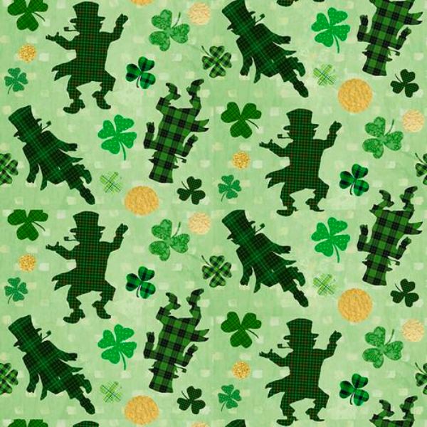9739-66 Green Tossed Leprechauns by Andrea Tachiera features leprechauns in a repeating pattern all over. Hello Lucky is a great St Patrick’s day themed collection. Andrea Tachiera captures the fun of St. Patrick’s Day in this collection. Including all shades of green, shamrocks, dancing leprechauns and pots of gold.