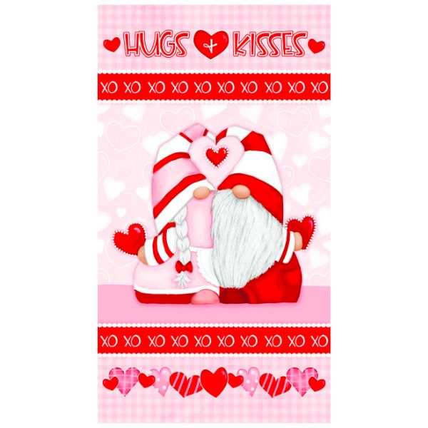 9790P-28 24″ Pink Gnome Panel by Shelly Comiskey features gnomes hugging with the words hugs and kisses above. Gnomie Love by Shelly Comiskey captures the love and sweetness of Valentine’s Day.