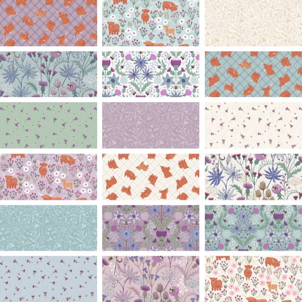 A Celtic Summer Fat Quarter Pack by Lewis & Irene consists of all 18 designs from this Celtic-inspired collection. From highland cows to Celtic thistles, this collection showcases Lewis & Irene’s signature style with intricate patterns and beautiful florals.