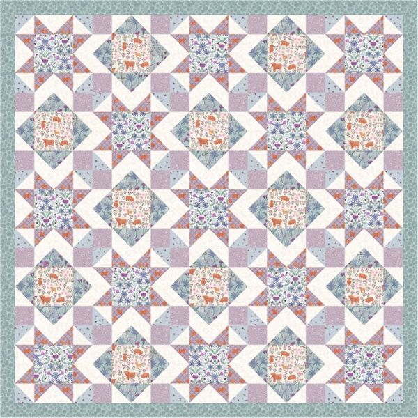 A Celtic Summer Quilt Kit, by Lewis & Irene features fabrics from the A Celtic Summer collection by Lewis & Irene. This Quilt features starburst shapes and patterns of highland cows and florals.