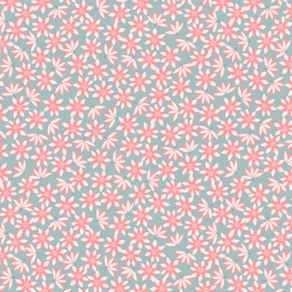 A628.3 Pink Lilies on Blue, On the Lake by Lewis & Irene is a design of delicate pink lilies on a blue background.