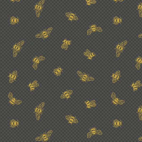 A654.3 Metallic Gold Bees on Charcoal by Lewis & Irene features a beautiful repeating pattern.