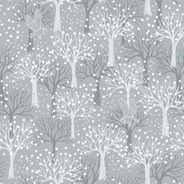 A660.1 Owl Orchard on Light Grey, a print by Lewis & Irene featuring pearlescent elements.