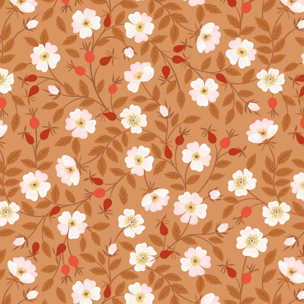 A693.2 Dog Rose on Rust, an autumnal dog rose print on rust by Lewis & Irene as part of the Evergreen Collection.