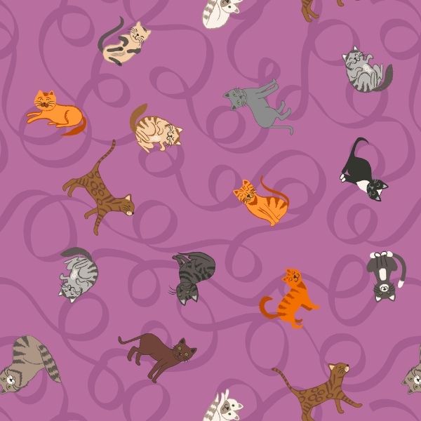 A711.3 Cats on Purple by Lewis and Irene is an adorable print featuring many different cats. A very playful, colourful design. Ideal for patchwork and quilting projects.