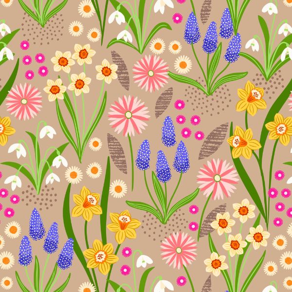 A714.1 Spring Flowers on Natural is a bright fresh floral design featuring a range of blossoming spring flowers. This collection brings us a bright and vibrant reminder of this beautiful time of year with reds,bright pinks, duck egg and cornflower blues, a cornucopia of colour to work with.