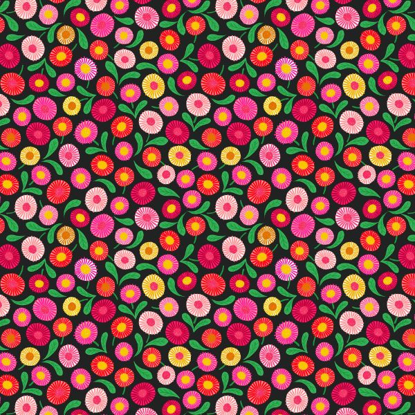A717.3 Daisies on Black is an bright bold floral design. This collection brings us a bright and vibrant reminder of this beautiful time of year with reds,bright pinks, duck egg and cornflower blues, a cornucopia of colour to work with.