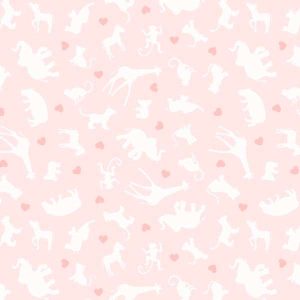 A770.1 Pink Animals & Hearts by Lewis & Irene is a super cute fabric. This fabric features adorable silhouettes of animals with hearts.