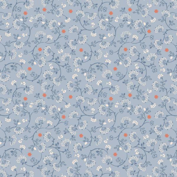 A778.1 Flower Chains Blue by Lewis & Irene is a pretty trailing floral design with hints of orange. Ideal for patchwork and quilting projects. This is a collection reminiscent of childhood quilts, made with love.