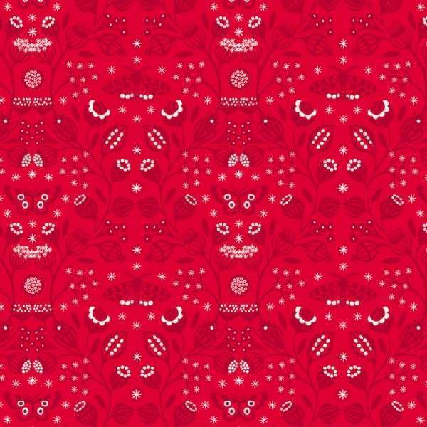 A786.3 Winter Botanical Red (Pearlescent) by Lewis and Irene is a beautiful mirrored design of butterflies and florals featuring shimmering pearl elements. Ideal for patchwork and quilting projects.