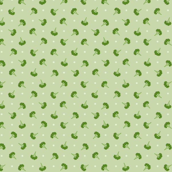 A821-2 The Kitchen Garden – Polka Dot Broccoli on Light Green, Lewis & Irene. A delightful pattern of polka dot broccoli heads scattered on a light green background.