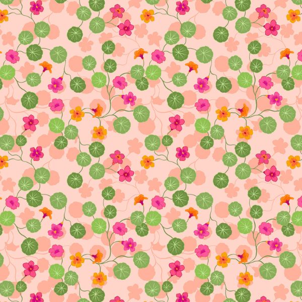 A823-2 The Kitchen Garden – Nasturtiums on Light Pink, Lewis & Irene. A delightful pattern of pretty pink nasturtiums, all featured on a light pink background.