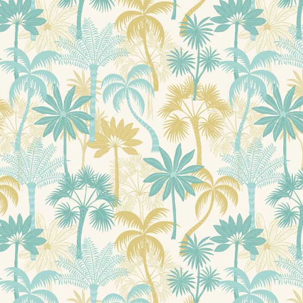 A889A Tropical Trees on Cream, Paradise by Lewis & Irene features a variety of tropical trees on a cream background.