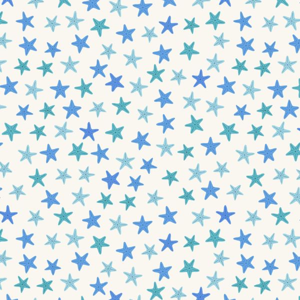 A896A Blue Starfish on Cream, Puffin Rock by Lewis & Irene is a design of starfish in shades of blue on a cream background.