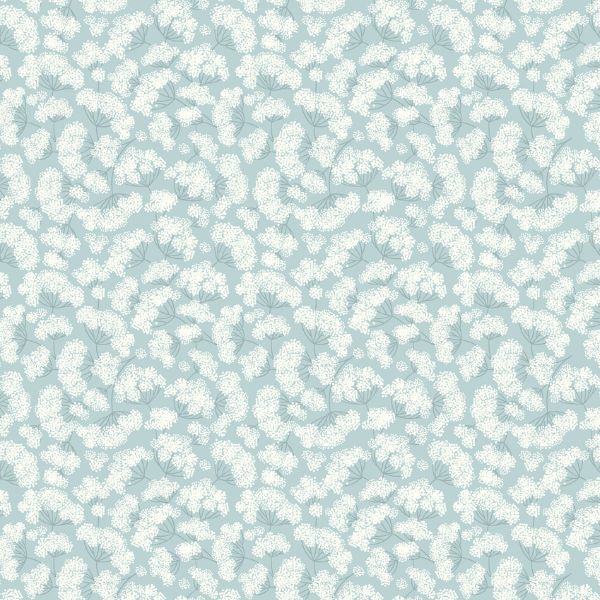 A902B Cow Parsley on Blue, Honey Sweet by Lewis & Irene features delicate white cow parsley flowers on a blue background.