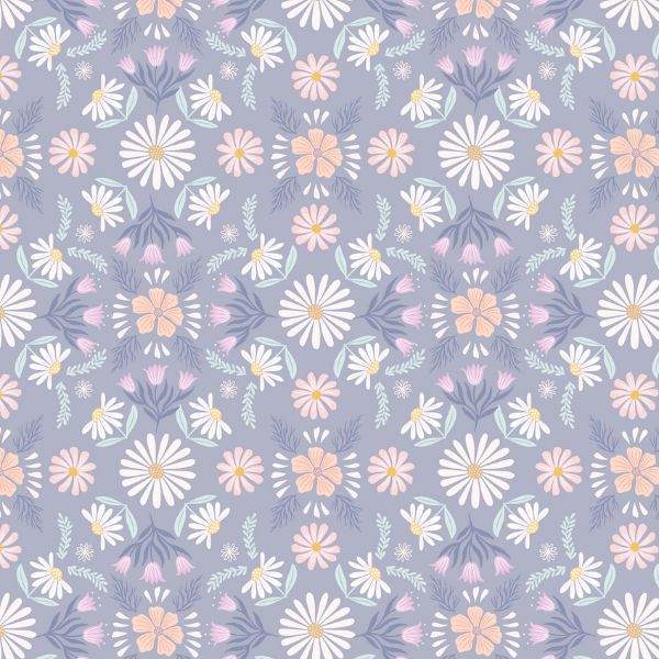 A903C Honey Sweet Flowers on Soft Lilac, Honey Sweet by Lewis & Irene is a design of pretty white and peach flowers on a purple background.