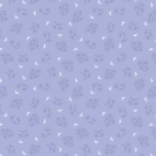 A905C Tiny Floral Bee on Lilac, Honey Sweet by Lewis & Irene features tiny bees buzzing around outlined flowers on a lilac background.