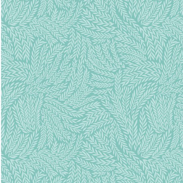 A909B Leaf Texture Turquoise, Creative Landscapes by Lewis & Irene is a design of branches of light leaves on a turquoise background.