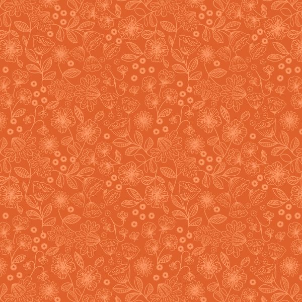 A911C Two Tone Floral on Orange, Creative Landscapes by Lewis & Irene is a design of pale orange outlined flowers on an orange background.