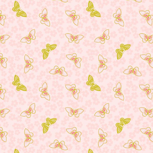 A921A Sakura Butterflies on Pink with Gold Metallic, Sakura by Lewis & Irene is a design of pink and gold butterflies on a pink background.