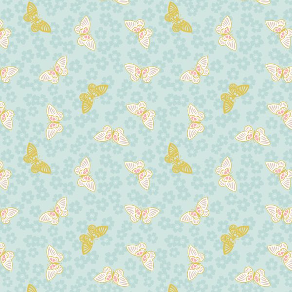 A921B Sakura Butterflies on Light Duck Egg with Gold Metallic, Sakura by Lewis & Irene