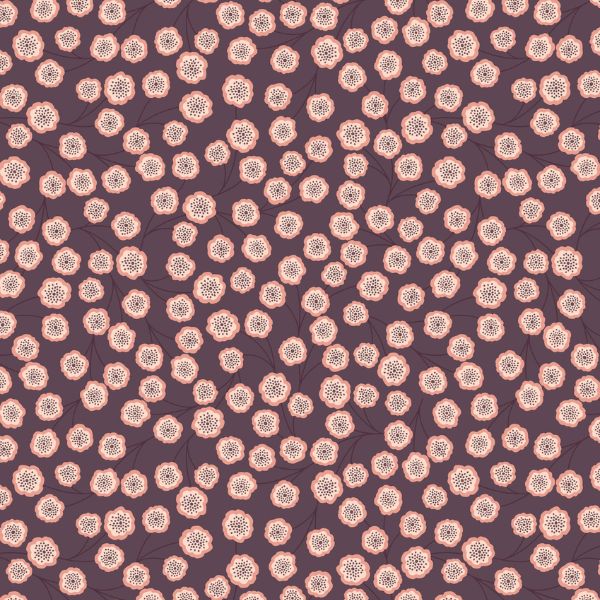 A927C Simple Flower Dark Aubergine, Jardin d’Automne by Lewis & Irene features scattered blossoms with cream outlines on a beautiful dark aubergine background. This playful yet elegant floral is perfect for seasonal quilts, warm toned home décor, and charming sewing projects.