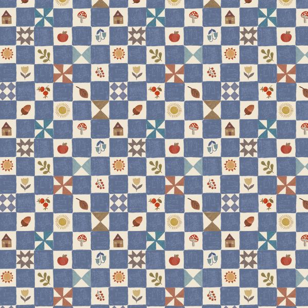 A942B Little Chequered Mid Blue, Cosy Home by Lewis & Irene features a classic small-scale check in soft mid blue and cream, offering a timeless, homely feel perfect for comforting quilts, cushions, and interiors.