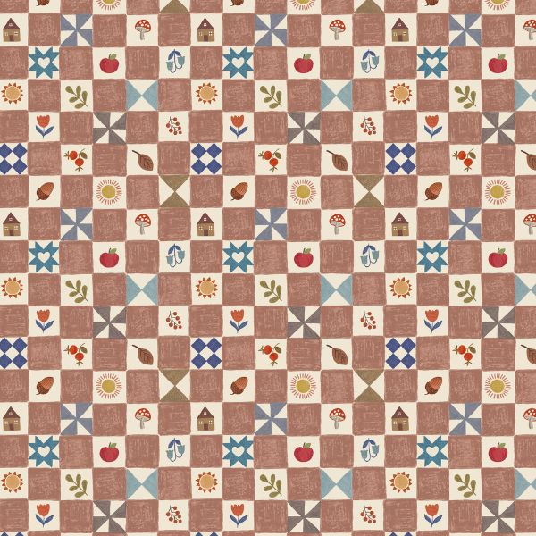 A942C Little Chequered Milk Chocolate, Cosy Home by Lewis & Irene features a charming small-scale check pattern in soft milk chocolate and cream squares, creating a warm, quilt-ready backdrop perfect for cosy quilts, cushions, and home touches.