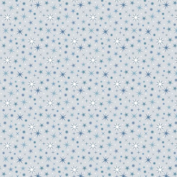 A948A Twinkling Stars on Light Silver, A Winter’s Moon by Lewis & Irene is a design of twinkling stars in shades of blue on a pale blue background.