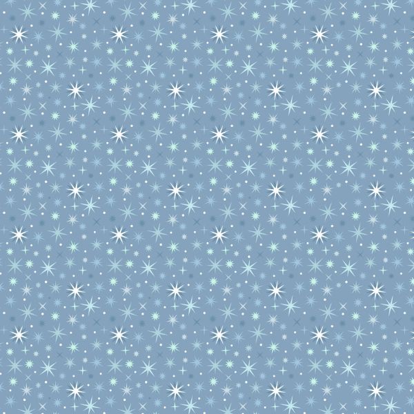 A948B Twinkling Stars on Mid Winter Blue, A Winter’s Moon by Lewis & Irene is a design of twinkling stars in shades of blue on a blue background.