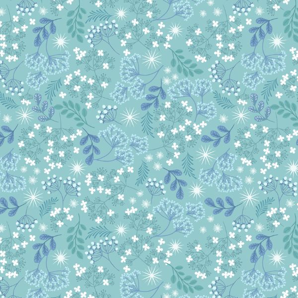 A949B Frosted Foliage on Light Aqua, A Winter’s Moon by Lewis & Irene is a design of icy winter foliage on an aqua background.