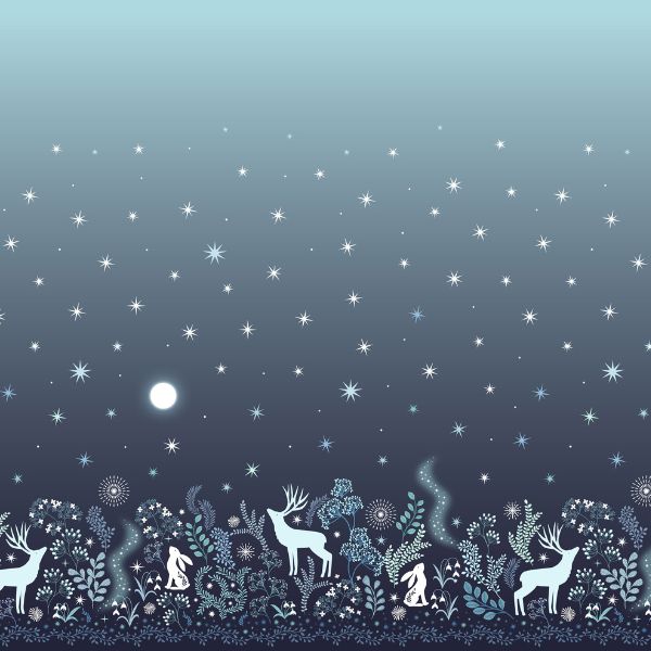 A953 Double Edge Border Panel, A Winter’s Moon by Lewis & Irene is an 18″ panel double edge border repeat of stags looking at the moon under a starry sky. Each repeat meets in the middle (2 x 22″ designs across 44″ wide fabric).
