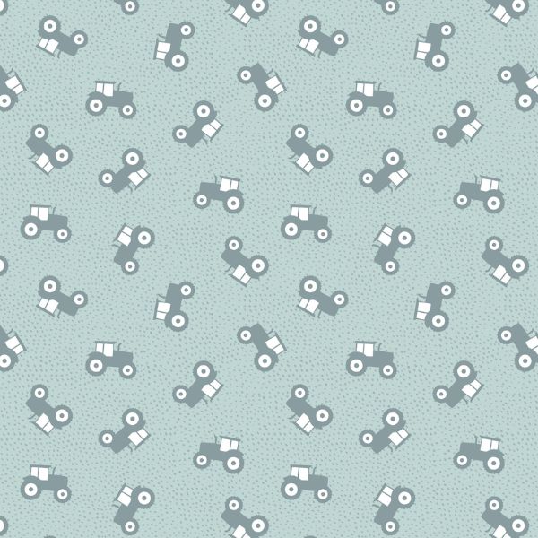 A956B Duck Egg Tractors, Country Croft by Lewis & Irene features rows of charming illustrated tractors in dark blue on a duck egg blue background celebrating the everyday rhythm of life on the farm with a gentle, nostalgic touch.