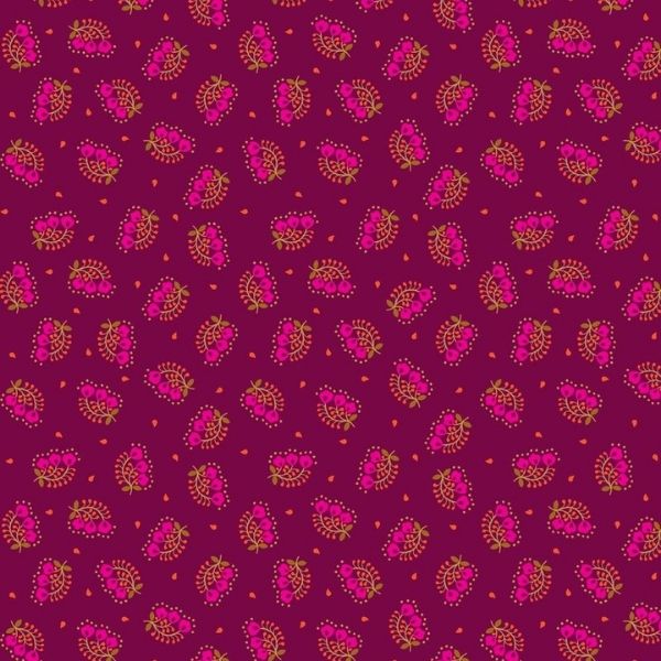 A978B Mini Stems on Dark Wine, Sambramha by John Scott is a print of tiny florals dotted on a red wine background.