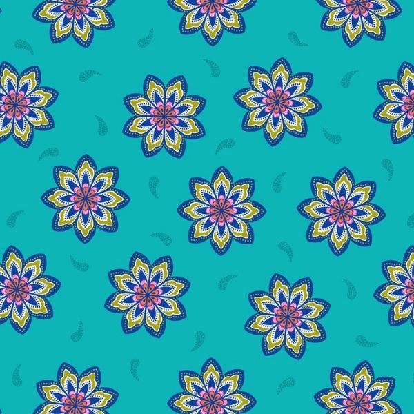 A979B Celebration Flower Turquoise, Sambramha by John Scott is a gorgeous print of ornate flowers on a turquoise background.