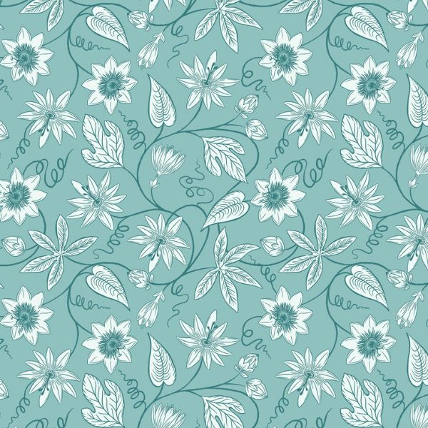 A986.C Passion Flower on Blue, Botanical Oasis by Lewis & Irene
