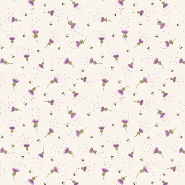 A988A Bee Thistle on Cream, A Celtic Summer by Lewis & Irene features a beautiful bee and thistle motif on a cream background.