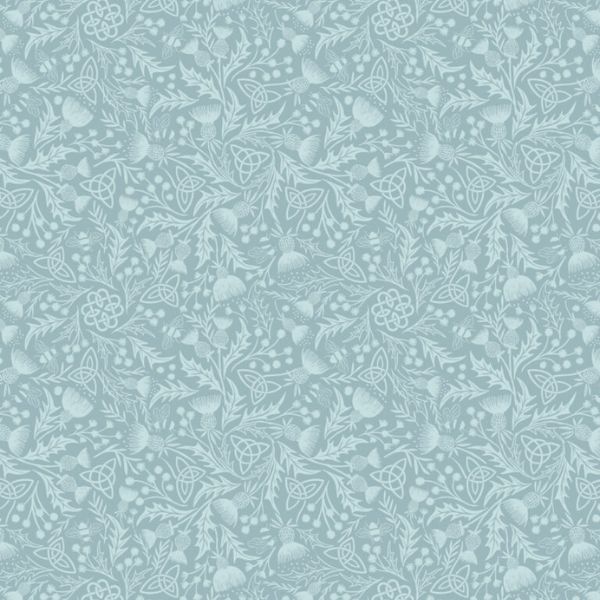 A990B Celtic Thistle on Duck Egg, A Celtic Summer by Lewis & Irene is a subtle pattern of thistles and Celtic symbols on a Duck Egg background.