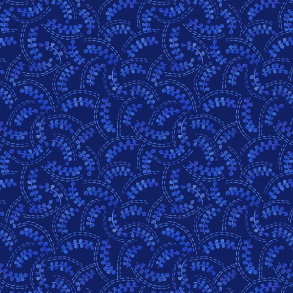 A994C Dark Blue Fronds, Porcelain and Sea Glass by Stuart Hillard features a design of light blue frond leaves on a dark blue background.